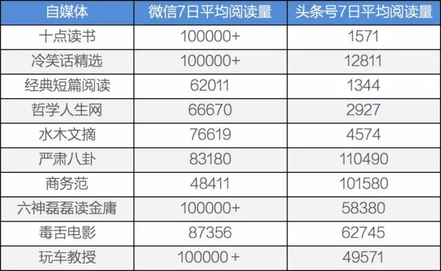通过某个自媒体在不同平台分发内容的具体效果,可以推测这个自媒体是不是真的有“流量分配权”。由于网易、搜狐等客户端都不对外显示阅读量,只拿微信和头条号两个平台上的数据做个观察。