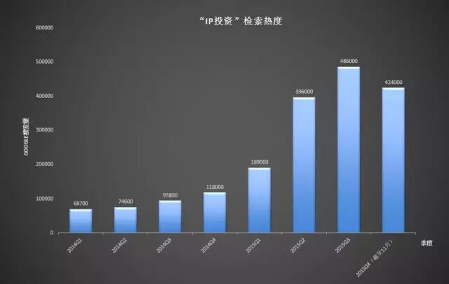 除了平台都在向内容生产者示好,资本家也盯上了这一块。“IP”的火热大家都感受到了,在Google上搜索有关IP投资的页面,结果数量在今年出现了爆发式的增长: