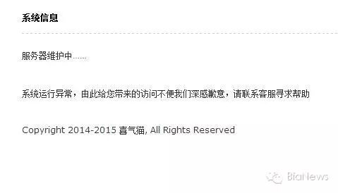汽车后市场B2B交易平台“喜汽猫”近日宣布停止运营,网站在今日(12月20日)停止线上交易,服务器将于2016年1月15日关闭。