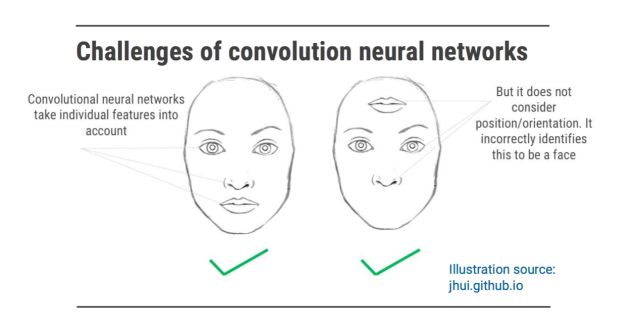 卷积神经网络的另一个问题是,其无法智能应对输入数据的变化。例如,用户必须用不同角度或视角的相同对象的图像对卷积神经网络进行训练,以识别所有变化。因此,它需要大量的训练数据来涵盖所有可能的变化。而胶囊网络则不同。该技术只需要较少的数据,且会将对象的相对位置和方向纳入考虑。