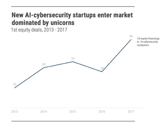 人工智能网络安全公司数量攀升(图片来自CBInsights报告)