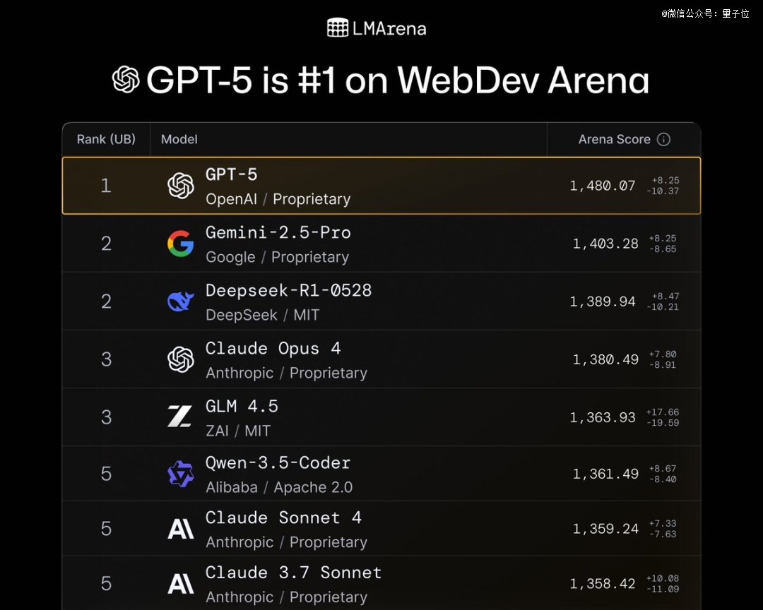 在网页开发中,GPT-5创造新纪录,超越Gemini-2.5-pro和Claude-Opus-4。