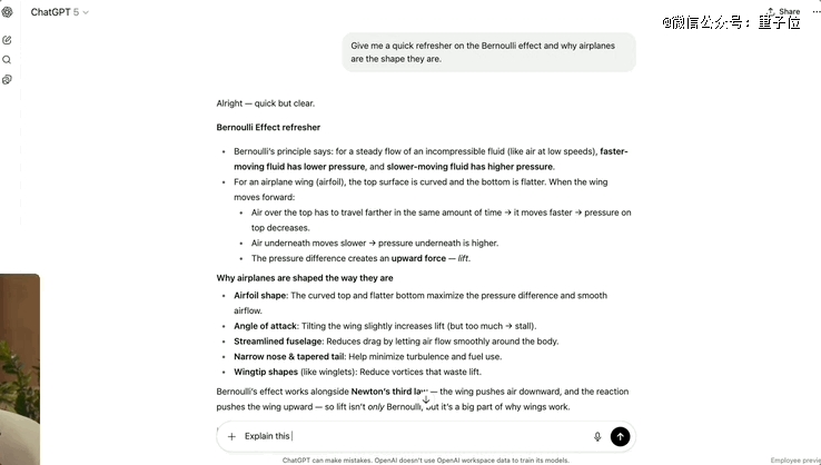 比如,一个中学生上物理课,想了解什么是伯努利效应以及飞机为何被设计成现在的形状。