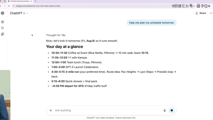 记忆能力也进一步提升,支持链接外部服务,比如Gmail、谷歌日历等。看到日程后GPT-5可以自动进行一些助理级工作,比如发现未回复的邮件等。